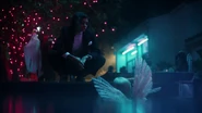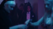 Troy talks to Gia as Rue & Lexi (dressed as Bob Ross) watch from the stairs, Kat takes a shot, Cassie dancing. Kat gets asked about what happened at the carnival.